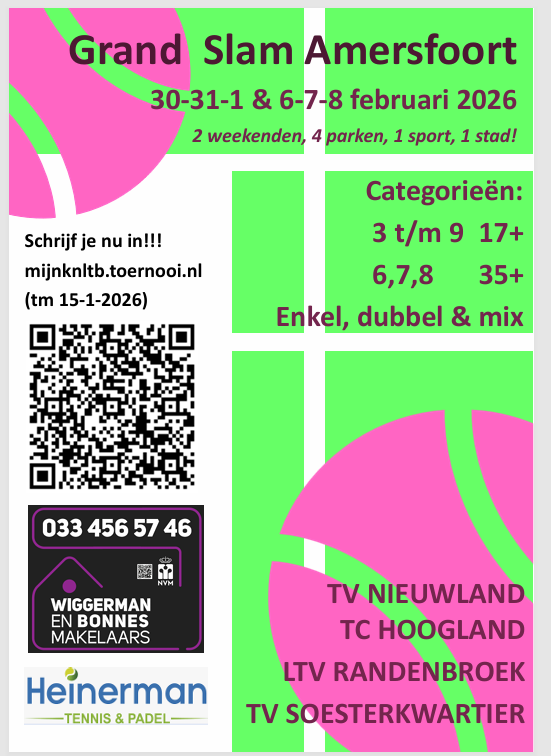 Inschrijven kan via deze link: Grand Slam Amersfoort 2026 | MijnKNLTB