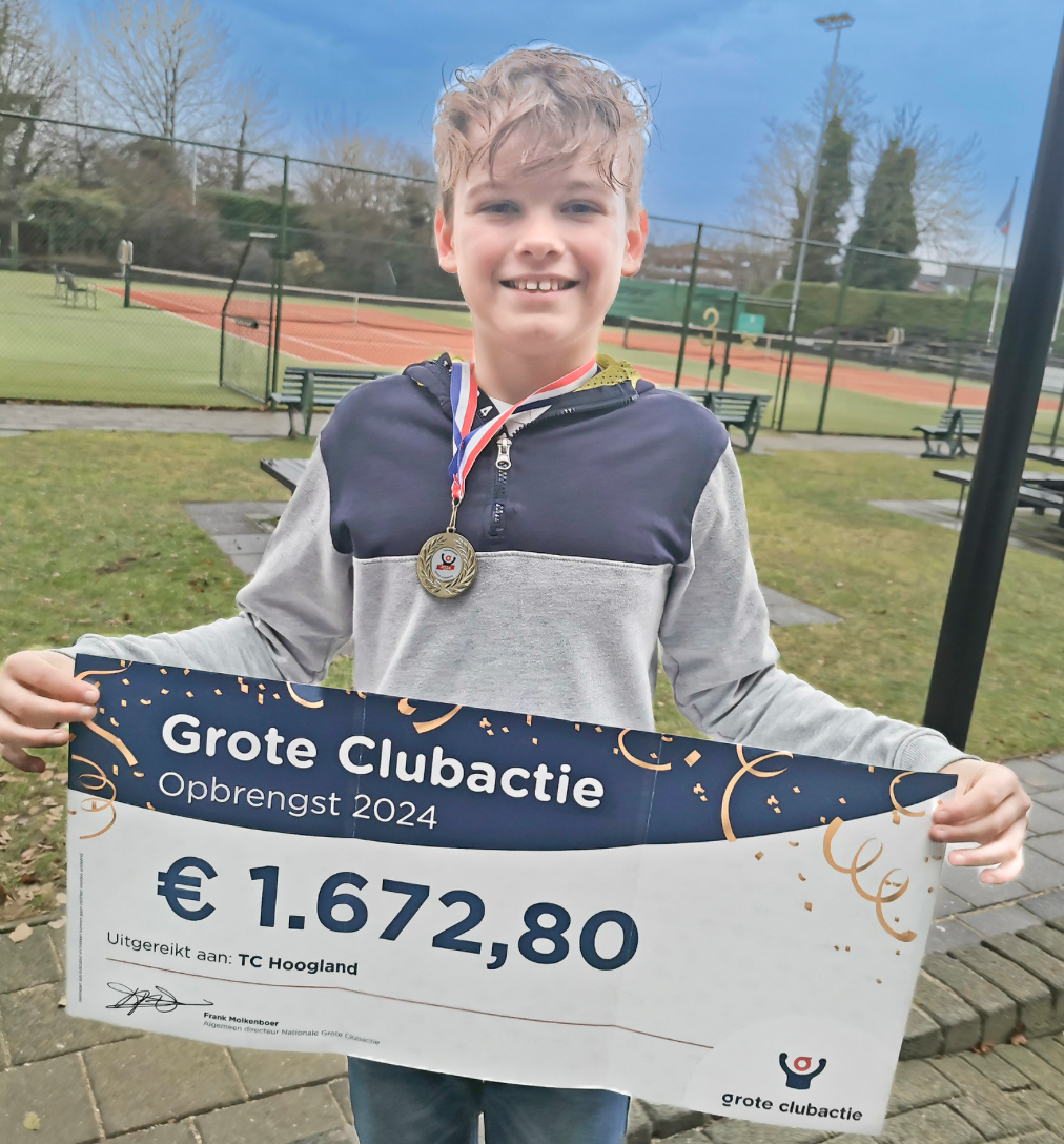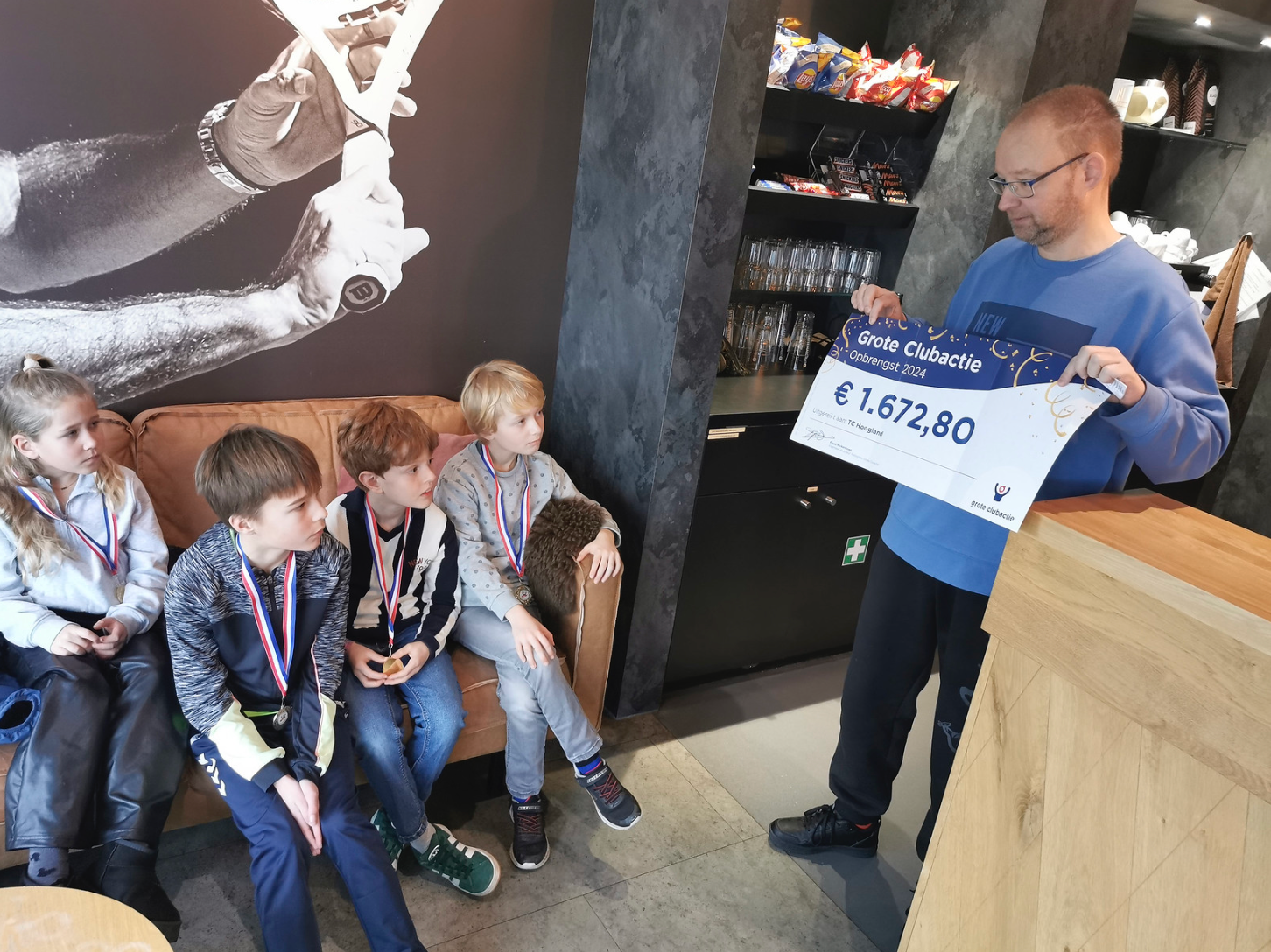 De Grote Clubactie 2024 heeft voor Tennis Club Hoogland maar liefst netto € 1.672,80 opgeleverd! De commissie WhoZnext *) mag dit geld gaan besteden aan activiteiten voor de jeugd. Dit werd zaterdag 22 februari op de club bekend gemaakt, waarbij ook de kinderen die de meeste loten hadden verkocht, in het zonnetje werden gezet.
