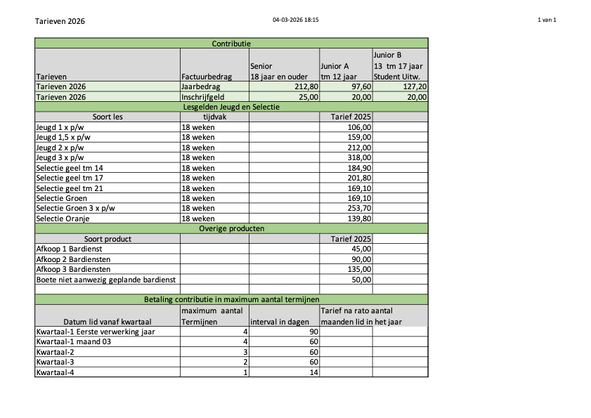 - De leeftijd voor de lidmaatschappen worden bepaald op 1 januari van het kalenderjaar, en blijven een heel jaar geldig.
