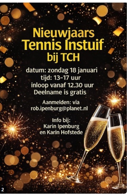 Op zondagmiddag 18 januari 2026 is er voor de tweede keer de gezellige en informele Nieuwjaars Tennis Instuif bij TCH. Begin 2025 werd dit evenement voor het eerst gehouden. Ruim zestig leden van TCH speelden toen enkele vriendschappelijke partijtjes en maakten daarbij van de gelegenheid gebruik elkaar het allerbeste te wensen voor het nieuwe jaar.