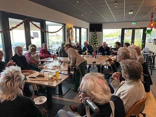 Op deze laatste dinsdag waren er vijf deelnemers, die werden begeleid door stagiaire Amy van de mbo-opleiding Sport en Bewegen. Zij werd geassisteerd door zes vrijwilligers van TCH bij het aangeven van de ballen. Na afloop was er een drankje met kerstbrood en kerstkransjes. Met andere vrijwilligers en hun partners erbij waren er deze middag zo’n 25 mensen aanwezig, het dubbele van vorig jaar. Inmiddels is er een hechte en enthousiaste groep ontstaan, maar nieuwe vrijwilligers zijn altijd welkom! Dan kun je ook afwisselen en hoef je niet elke dinsdag aanwezig te zijn!
