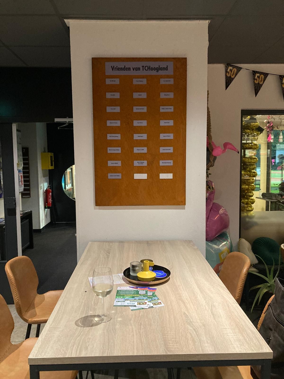 - Als dank voor de donatie wordt de naam van het lid vermeld in de kantine en op de website van Tennis Club Hoogland.